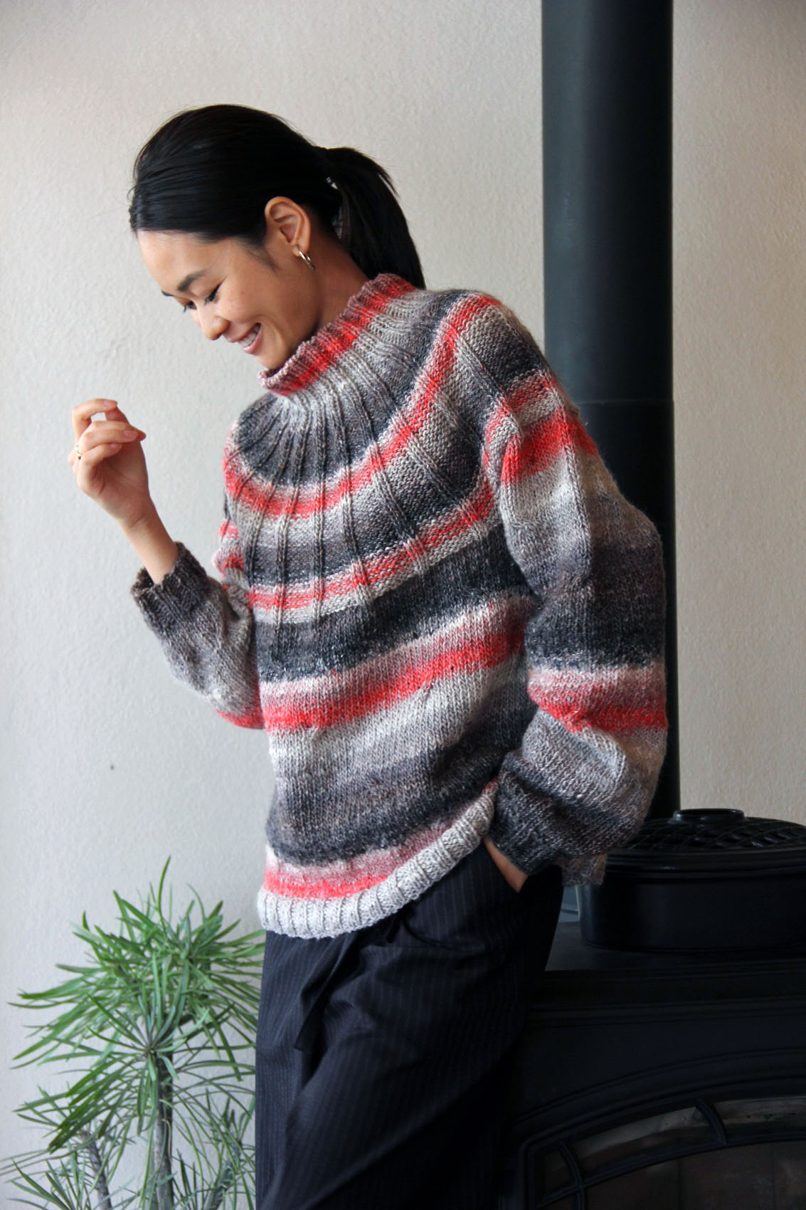 太い部分には撚りが入りにくく甘くなりやすいので、気になる部分は少し撚りを入れながら編むことをおすすめします。