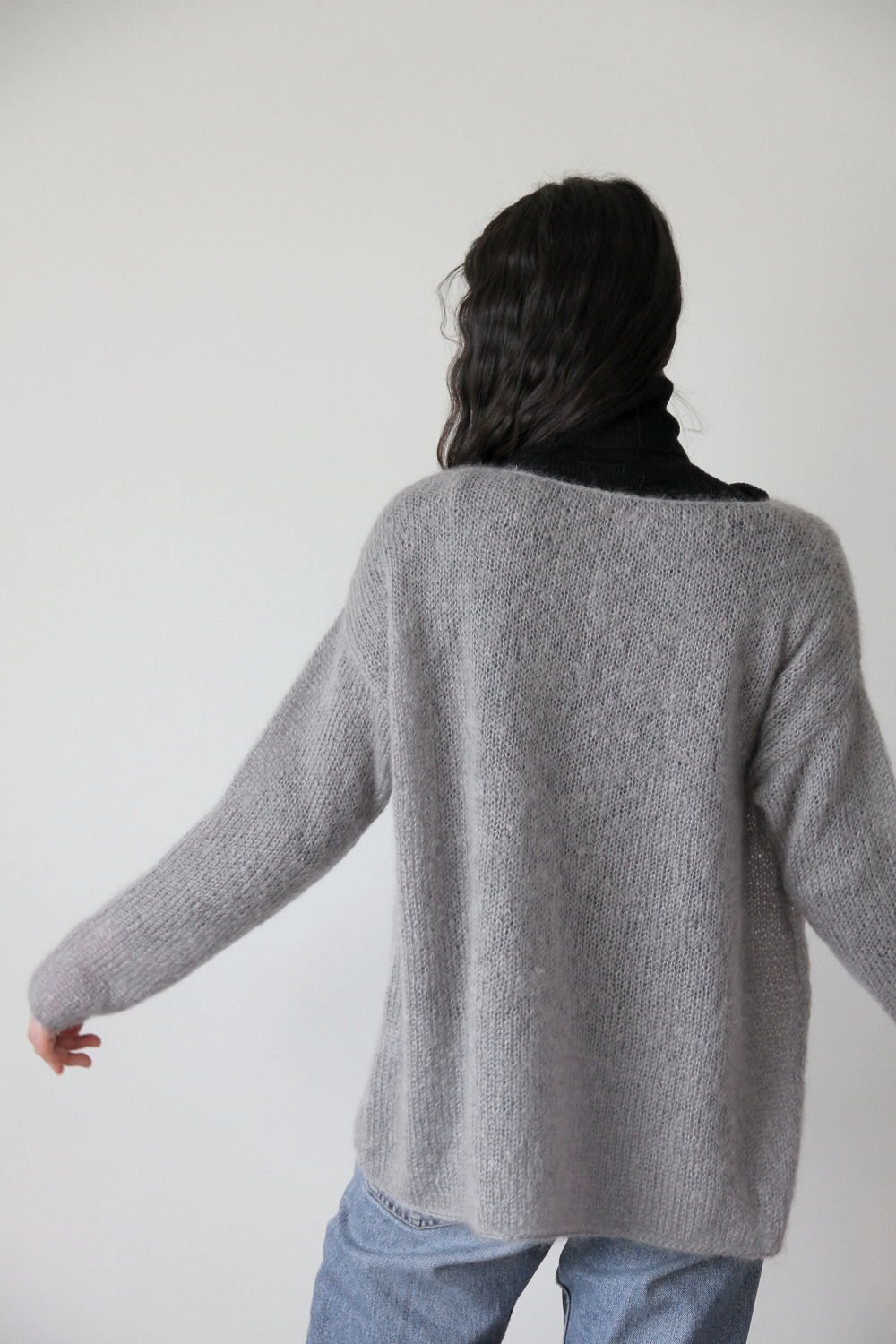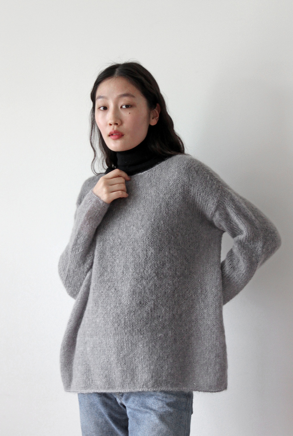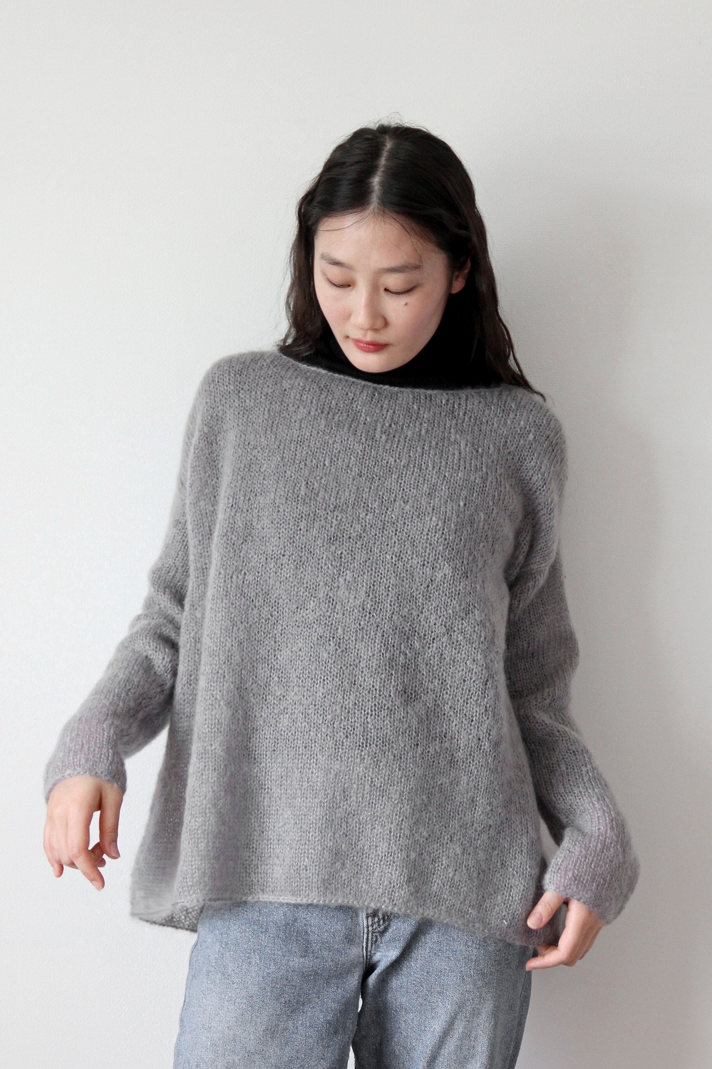 モヘヤ―ヤを2本どりで編むプルオーバーです。